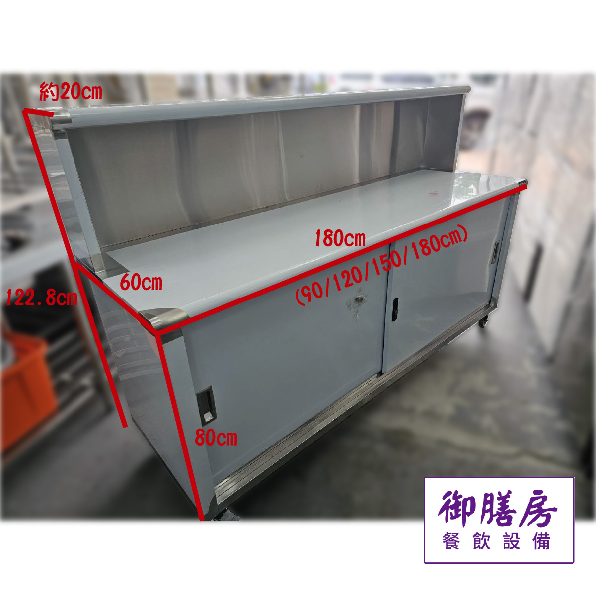 不鏽鋼櫃台 左右寬度可以選90/120/150/180/210cm 下方置物櫃可中間另加一層平台